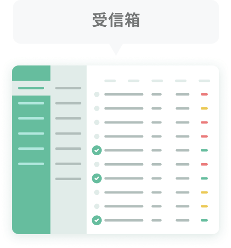 Tayoriの受信箱はチームのみんなで閲覧可能。メールごとに担当を振り分けることができるので、チームでのタスク分担が可能になります。担当者が一人の場合は、ステータス管理機能がそのまま個人のタスク管理として利用できます。
