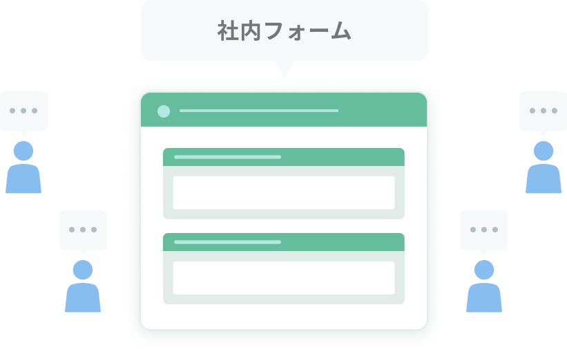 フォームやチャット機能を使ってお問い合わせフォームを作成し社内に共有すれば、社内からのお問い合わせを一ヶ所に集中させることができます。フォームからのお問い合わせは受信箱に届きます。